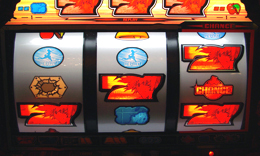 本機のゲーム性の核となるチャンス絵柄。レバーON時に警告音+ランプによるナビが発生したら右リールに赤7の塊を目押ししよう。