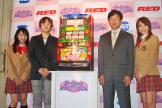 続いて、レッド社の山田浩生プロデューサーは、「これまではゲームコンテンツを中核とし、アニメや漫画など様々なメディアミックス展開を行ってきた。パチスロもそのひとつの可能性として以前から検討していた。他のメディアとは異なり、作品の導入部分を長くできないという縛りはあったが、『萌え』をテーマに分かりやすいキャラクター設定、展開でプレイヤーに楽しんでいただけるように仕上げている」と述べ、今後の展開に関しては、「携帯電話の着うた配信や動画配信サイトへの紹介動画などをスタートしていく」と発表した。 |