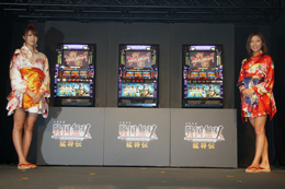 | 2010年10月2日、山佐株式会社は東京・千代田区のベルサール秋葉原にて、パチスロ最新機種『パチスロ戦国無双〜猛将伝〜』の新機種発表会を開催した。会場にはゲストとして「パチスロ戦国無双塾 秋の陣」にて講師を務めた攻略誌ライター陣と、グラビアアイドルの川村ゆきえさんが登場。また、同企画にて優秀な成績を収めた100人の一般ユーザーも参加し、新機種の試打会を始め様々なイベントが催された。それでは当日の様子をお伝えしていこう。 |