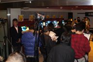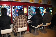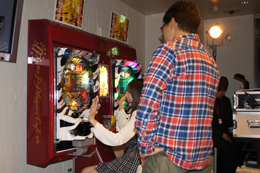 開場前から多数のファンが長蛇の列を作ったP・Players Cafe。会場内ではファンが立ち代りで新機種の試打に興じた。