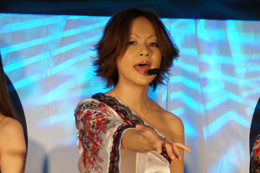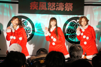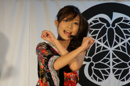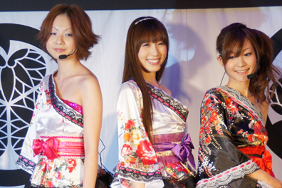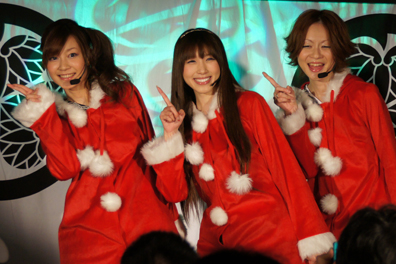2曲目はサンタクロースのコスチュームを脱ぎ、セクシーな和装で新機種の挿入歌「無限の空へ」を歌い上げた。
