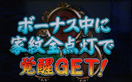 ▲BIG消化中に赤・黄色・緑、3つの家紋を点灯させると覚醒への突入が確定する。それぞれの色に対応した小役(赤=チェリー、黄色=兜、緑=巻物)が成立すると、宝玉点灯のチャンスだ。