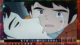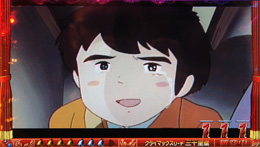 | こちらは「母をたずねて三千里」ステージの「クライマックス発展リーチ」。アニメ同様にお母さんとの再会を果たせば感動の大当たりだ。 |