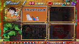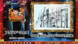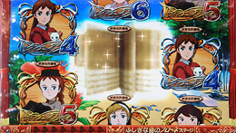 | 大当たりラウンド中の演出は4パターンから選択可能。「フランダースの犬」「母をたずねて三千里」「ふしぎな島のフローネ」を選んだ場合は、各作品のストーリー紹介を見ることができる。チャンス絵柄での大当たりでも、4、8、12ラウンド目で宝箱からキャラクターが出てくれば…!? |