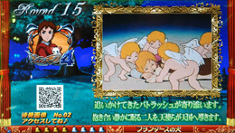 | 画面中央にバイブルが停止すれば「ラストページ連続予告」。最終話のムービーが流れ、対応する作品のクライマックス発展リーチへ…!? |