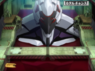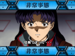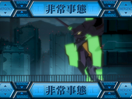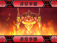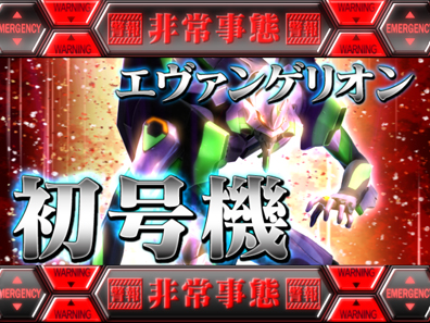 ▲シャッターが開き、使徒が登場すればこの「使徒予告」。出現した使徒に対応する連続演出に発展するぞ。