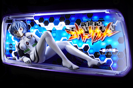 ▲パネル部分には業界初の巨大「綾波フィギュア」を搭載。コイン投入やBET時にライトアップされるぞ。