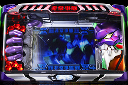 ゲーム性の前に、まずは気になっている方も多いことが予想されるので、インパクト抜群の筐体の解説から始めよう。右の筐体写真をご覧の通り、本機はエヴァの世界観を忠実に再現するべく専用筐体にて登場している。パネル部分には巨大な「綾波フィギュア」を搭載しており、コイン投入やBET時にライトアップされる仕組みだ。液晶の両サイドには「初号機役モノ」を搭載しており、手が動き出せばチャンスで、咆哮すれば激アツとなる。また、液晶の下には前作でも好評だった「ATフラッシュ」を搭載。光ればチャンスとなるのは同じだが、本機では色によって信頼度なども示唆しているぞ。更に、コイン投入口付近にはパチンコを髣髴とさせるプッシュボタン「ネルフボタン」を搭載しており、液晶演出をよりアツく楽しくすることに成功している。