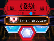 ▲司令室ステージでは、ネルフボタンを使用する「会話予告」「モニター予告」、会議の内容によって期待度が変化する「作戦会議予告」、小役ナビがメインとなる「ゼーレ尋問予告」「キャラ会話告知予告」などが発生する。