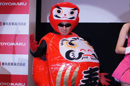 ダルマ軍団、未だ健在! 街頭でプロモーション活動に勤しむ傍ら、会場への道案内役を務めていた。