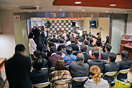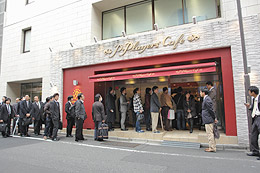 | 会場となったのは東京・台東区にあるP・Players Cafe。予てより話題となっていた新機種が遂にお披露目されるとあってその注目度は高く、場内は立ち見が出るほどの混雑となった。 |