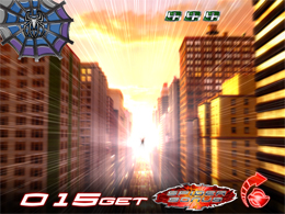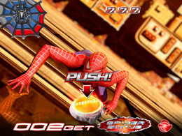 | 「インフィニティゾーン」はビルをよじ登るスパイダーマンの姿と共に展開していく。ボタンプッシュ演出などでチャンスを告知するぞ。 |