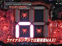最後にファイナルチャンスだが、このゾーンではボタンプッシュでスパイダーマークを捕らえることができれば上乗せ確定。対して失敗するとスパイダーループボーナスが終了し、通常状態へ転落となる。このゾーンはループ終了のピンチであると同時に、大当たり確率が1.9分の1と高く、ここで上乗せに成功すれば最大の20ラウンド分を上乗せできるという大きなチャンスでもあるゾーン。本機で最もアツくなれる、最大の見せ場であるといえるだろう。
