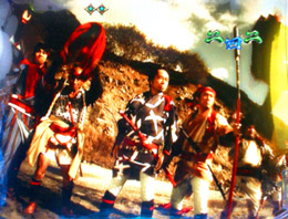 融合系(中)リーチの「突撃、次郎長一家リーチ」は捕まったお蝶を救出すれば大当たり。カットインが実写ならハイチャンスだ。