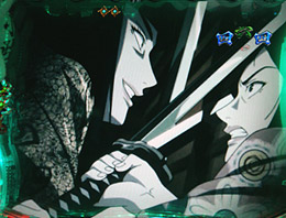 こちらは一度停止した絵柄を次郎長が刀で切って再変動させる「次郎長煽り予告」。