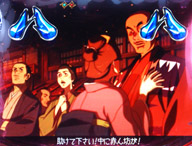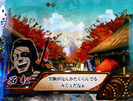 こちらは悪党に襲われた町娘を次郎長一家が救出する「寄りステップアップ予告」。ヒキステップアップ予告と同じく、一家が集合するステップ5まで発展すればチャンスだ。後述する家紋予告と複合するパターンも存在するぞ。