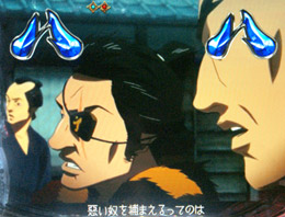 「黒駒からの刺客三馬政リーチ」は次郎長とお蝶が三馬政と対決。「天誅、黒駒勝蔵リーチ」と並ぶ高信頼度のアニメ系リーチだ。