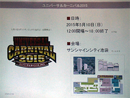 長谷川氏の主催者挨拶では、『沖ドキ!』の新パネル「バカンスver.」の登場や「ユニバーサルカーニバル2015」の詳細スケジュールも語られた。