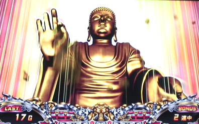 山佐より登場したオリジナルコンテンツマシン『煩悩BREAKER禅』は、1セット20ゲーム+αのボーナス高確率ゾーン「煩悩BASH」が生み出す擬似ボーナスのループが魅力の1台。初当たりは主にレア小役や14ゲームの自力解除高確「廻想の章」(期待度約50%)を経由したBIG(純増約200枚)orREG(同約50枚)となるが、どちらからも約70%で煩悩BASHへの突入が期待できるぞ。煩悩BASH中はボーナスの構成が「極楽BIG BONUS(悟)」(純増約200枚)と「極楽REG BONUS」(同約50枚)に変化し、前者は極楽BIGの1G連を、後者は煩悩BASHのストックを抽選。ボーナスの抽選は全役で行われるため、煩悩BASHとボーナスのループ率(極楽BIGの1G連含む)は約80%にまで及ぶ。「龍鐘を破壊しろ!」「隕石を跳ね返せ!」といったミッション系演出や、「闘舞(バトル)演出」への発展でボーナス当選の大チャンスだ。