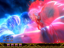 | 『ぱちんこCR北斗の拳百裂(ケンシロウ)』に続く「北斗神拳ミドルST」第2弾『ぱちんこCR蒼天の拳-天授-』がSammyより登場した。100回転の電サポモード「天授モード」は50回転のSTと50回転の時短で構成され、トータルでの連チャン期待度は約70%。同モード中はテンパイ成立で拳志郎と宗武との死闘がスタートし、拳志郎が勝利すれば大当りとなる。天授モード突入のメイン契機は絵柄揃い大当りで、「蒼天の拳」シリーズの代名詞「文句予告」に「百裂拳連続予告」「ドラゴンステージ赤背景」「キリン柄予告」「天授の儀リーチ」を加えた「5大注目演出」が発生すれば激アツ。また、潜伏確変の可能性を秘めた「宿命の刻」や、そこから昇格するハイチャンスモード「真・宿命の刻」に移行した場合も大当りの大チャンスだ。なお、ヘソからの大当りは潜伏確変の割合が高めだが、潜伏確変中に再度潜伏確変に当選すると天授モードに突入。もちろんこの場合も100回転のフル時短を獲得することができるぞ。 |